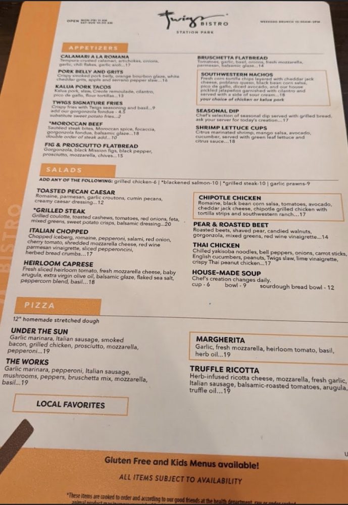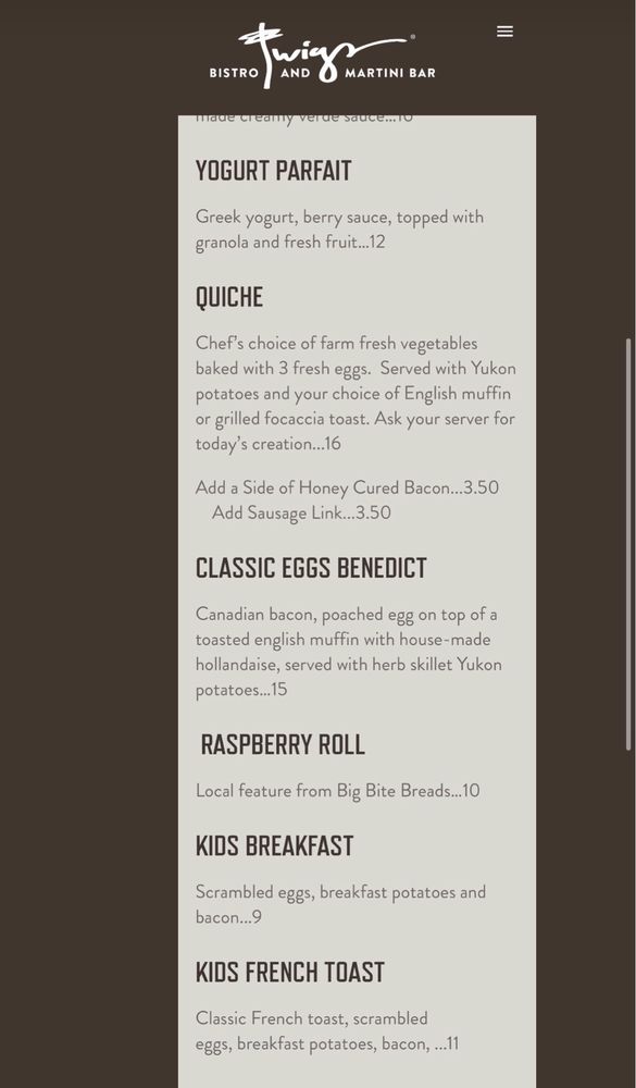 Twigs Bistro and Martini Bar in Farmington, UT offers a trendy New American dining experience with a full bar and a variety of handcrafted cocktails. The menu features mouthwatering appetizers like Bacon Bourbon Sliders and Bruschetta Flatbread, as well as flavorful handhelds such as Blackened Shrimp Tacos and Blue Steak. The salads are fresh and innovative, with options like Chipotle Chicken and Grilled Steak Salad. The restaurant also offers happy hour specials and is a great spot for groups or a fun night out. With gender-neutral restrooms, free Wi-Fi, and outdoor seating, Twigs Bistro and Martini Bar caters to a diverse range of customers. The combination of delicious food, unique cocktails, and vibrant atmosphere makes Twigs a must-visit dining destination.